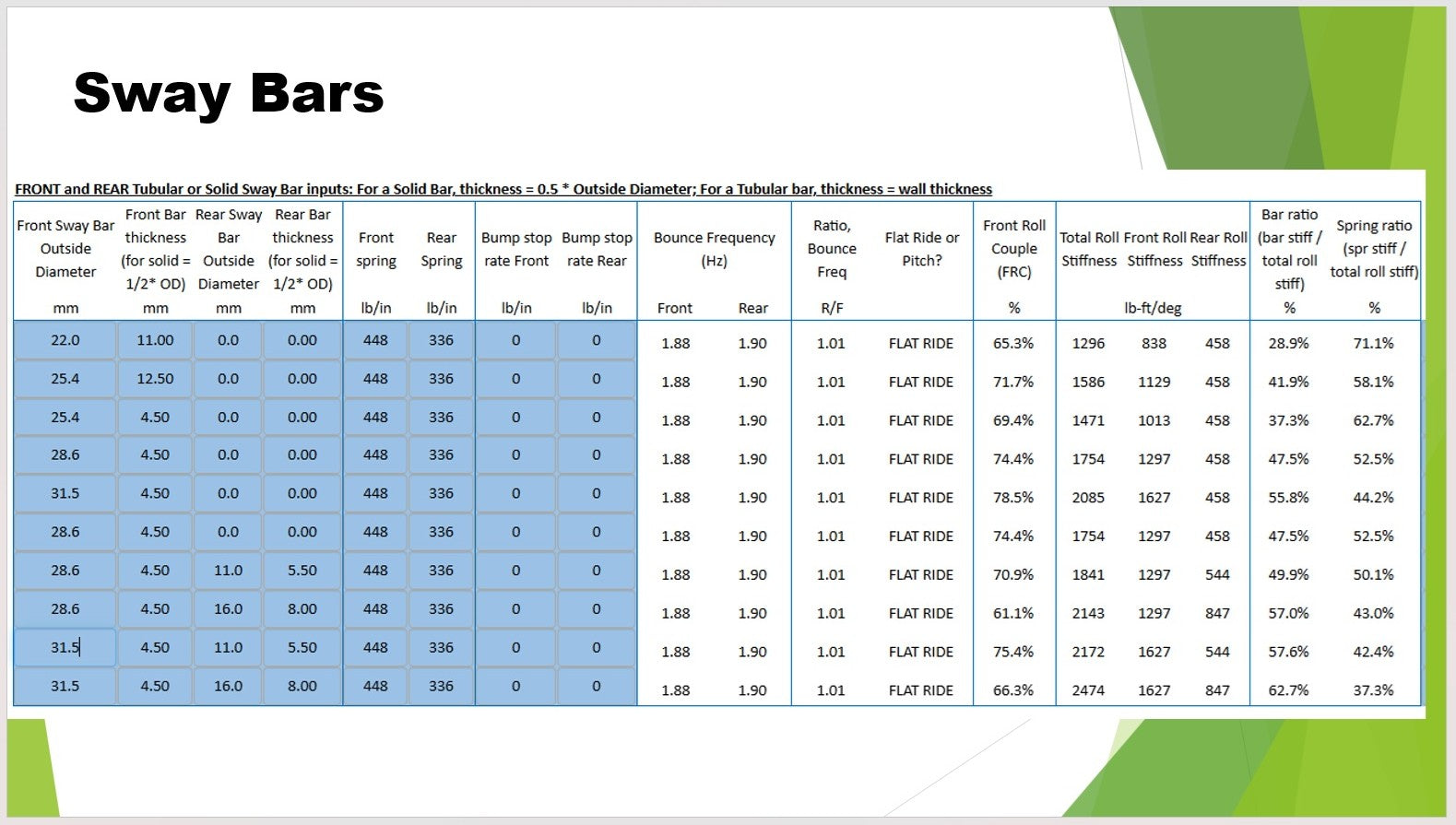 - Selecting spring rates